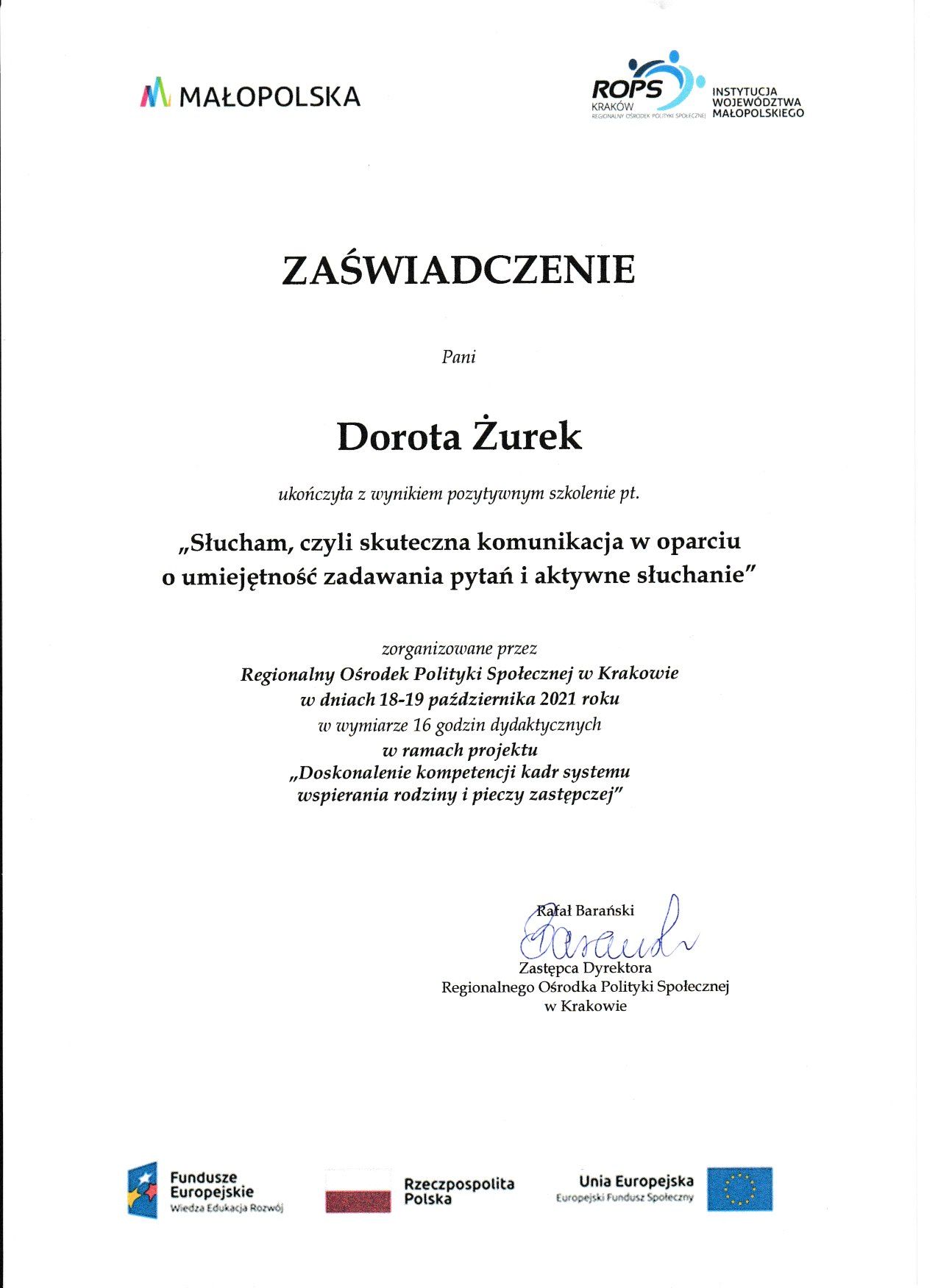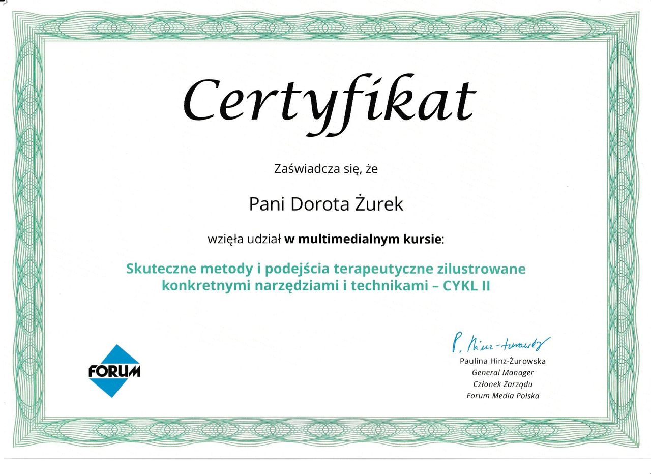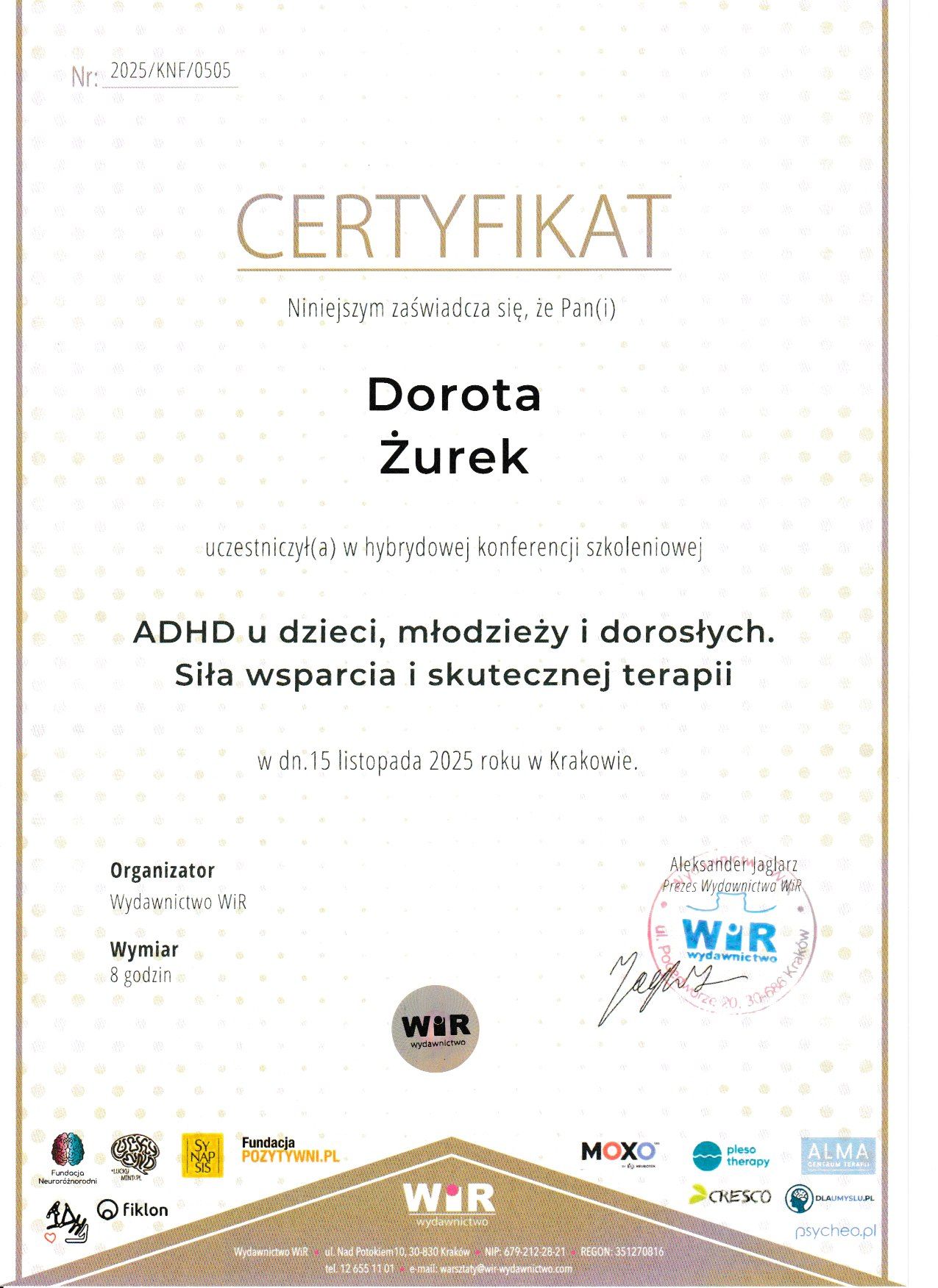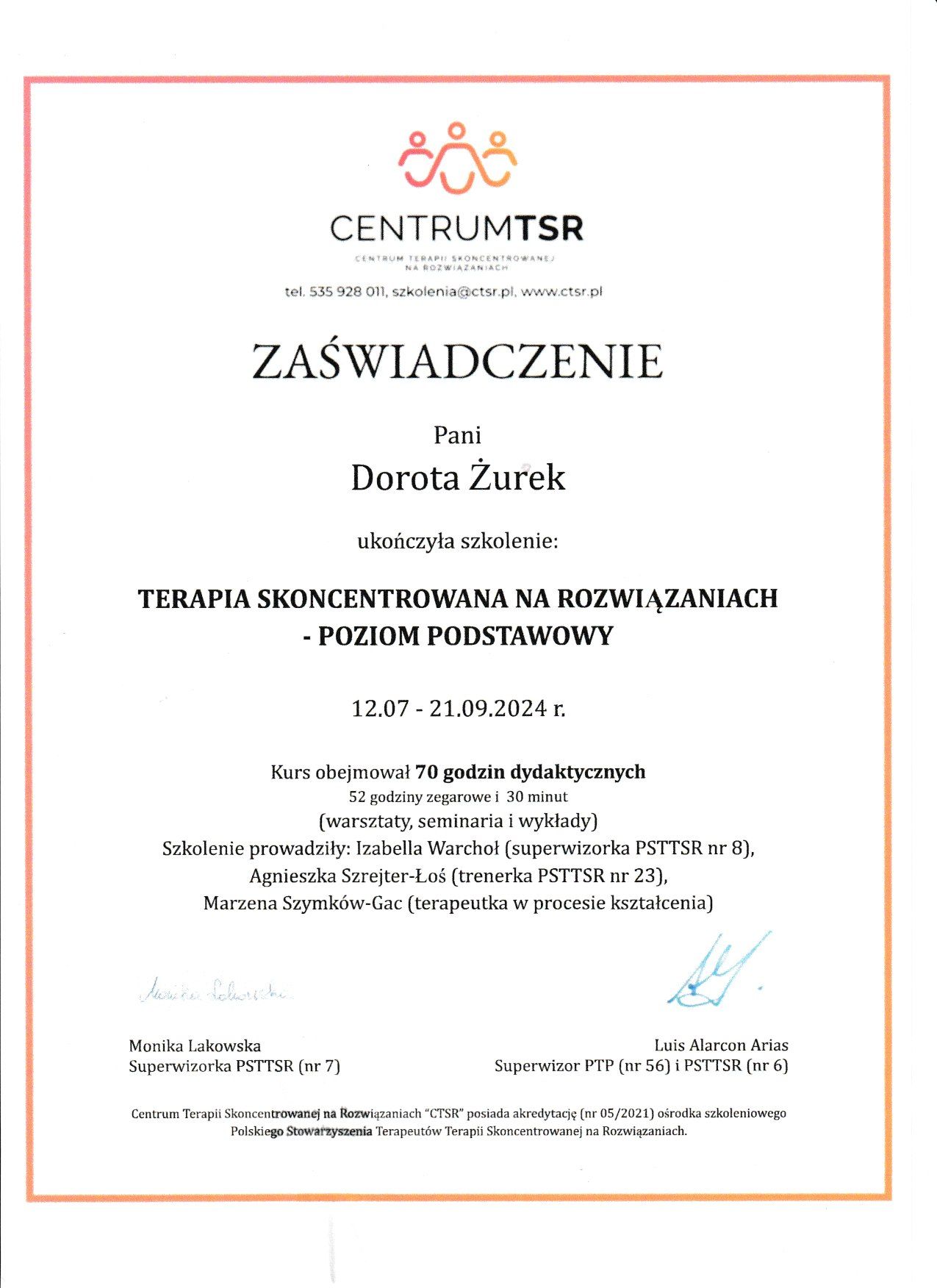 Czy Dorota Żurek przyjmuje online, bez konieczności pojawiania się w placówce?Tak, Dorota Żurek oferuje konsultacje online. Wybierz opcję „konsultacja online” przy umawianiu wizyty, a zobaczysz dostępne terminy.