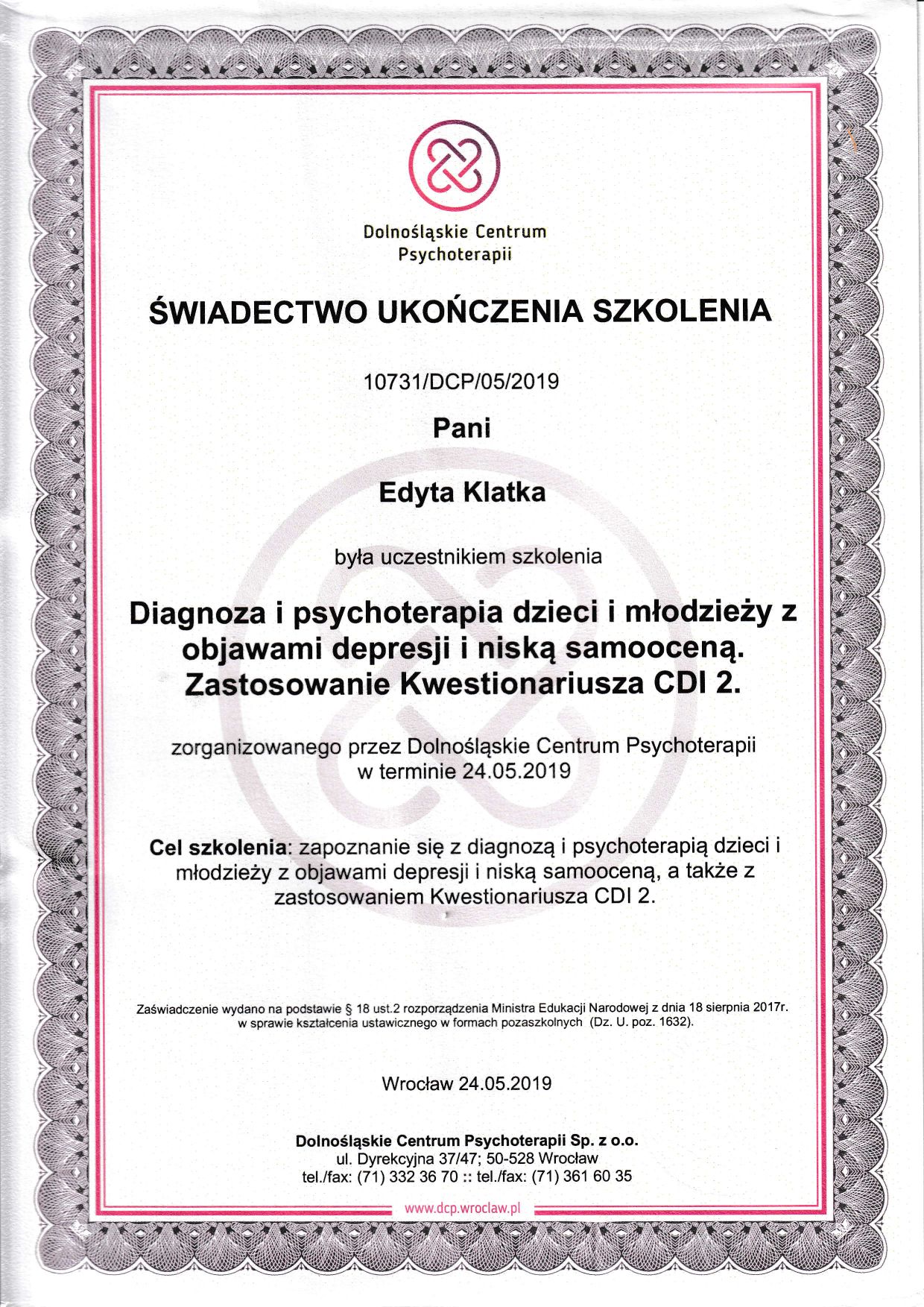 Jaki jest zakres porad oferowanych przez Edyta Klatka?Edyta Klatka to psycholog. Na podstawie swojego doświadczenia i wykształcenia Edyta Klatka oferuje usługi takie jak: konsultacja psychologiczna (kolejna wizyta), konsultacja psychologiczna rodzice, konsultacja psychologiczna (pierwsza wizyta), mediacje rodzinne, konsultacja psychologiczna dla rodzin, Psychoterapia, psychoterapia par i małżeństw, badanie psychologiczne, badania psychologiczne, Konsultacja pary.