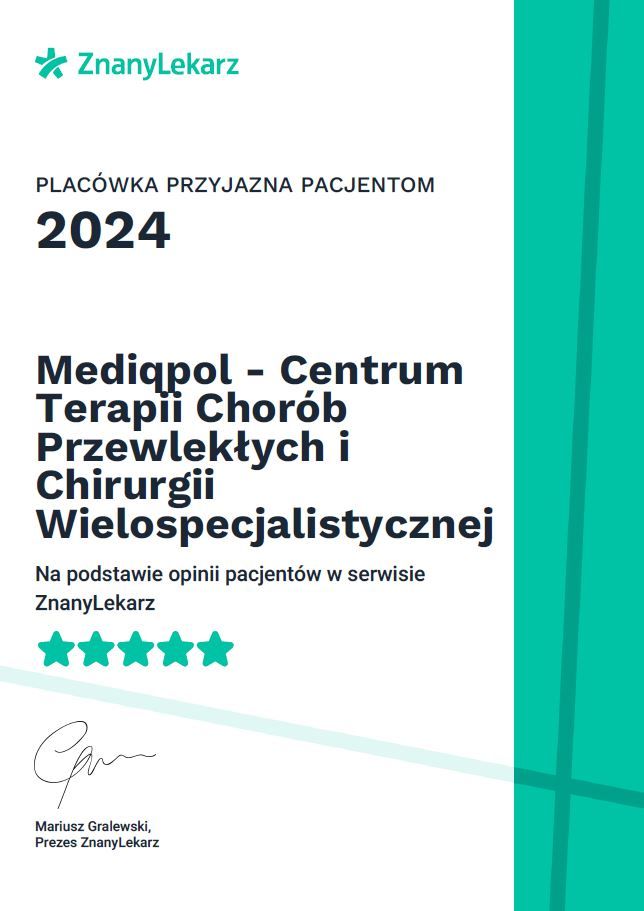 Z szacunku dla Pacjentów czekających na wizytę, uprzejmie prosimy o informowanie nas o ewentualnej rezygnacji najpóźniej 12 godzin przed umówionym spotkaniem — telefonicznie, SMS-em lub online.
