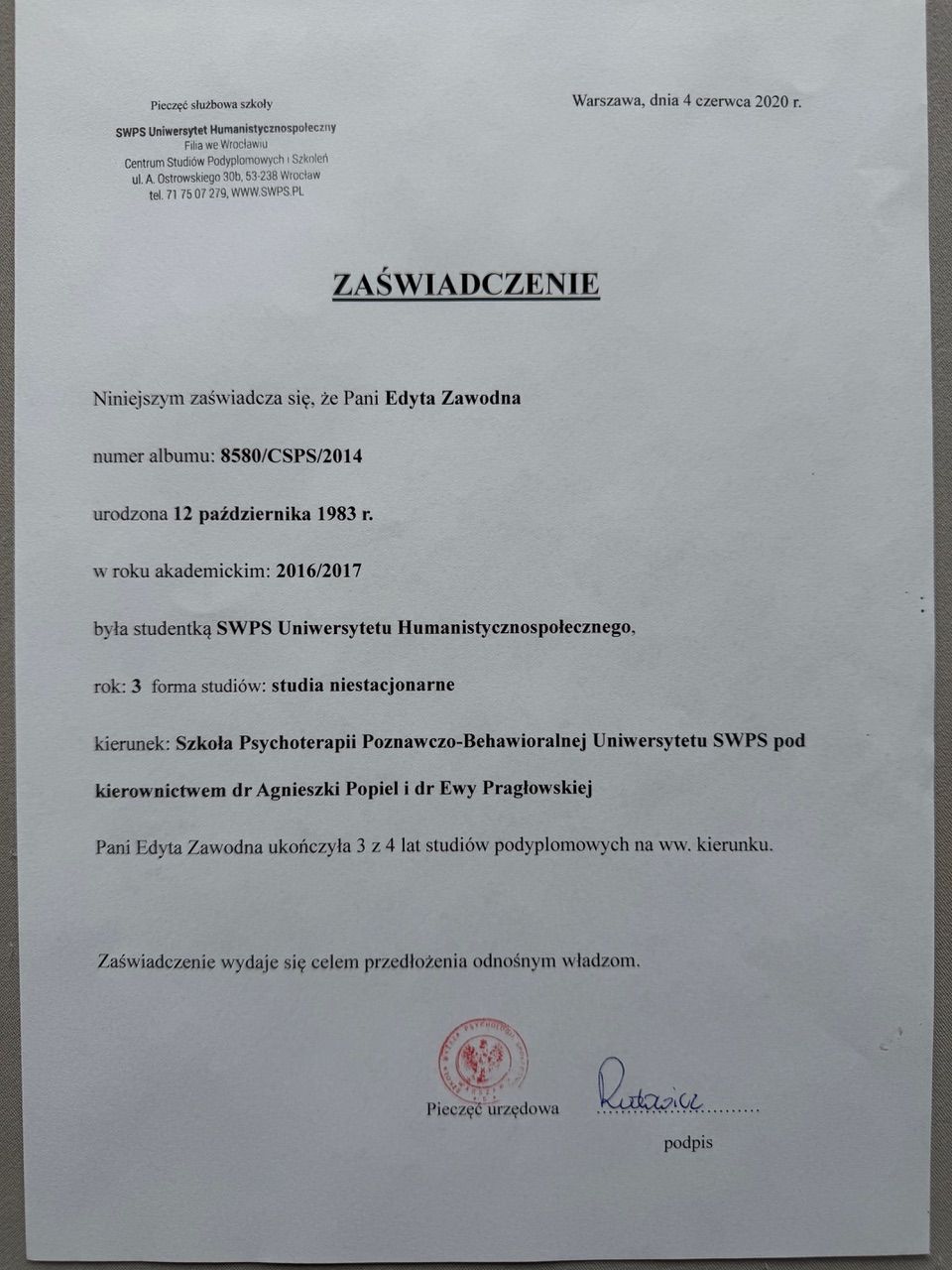 Edyta Zawodna I psycholożka I psychoterapeutka CBT I mediatorka rodzin i związków