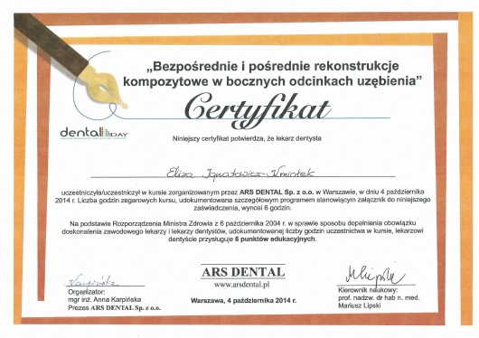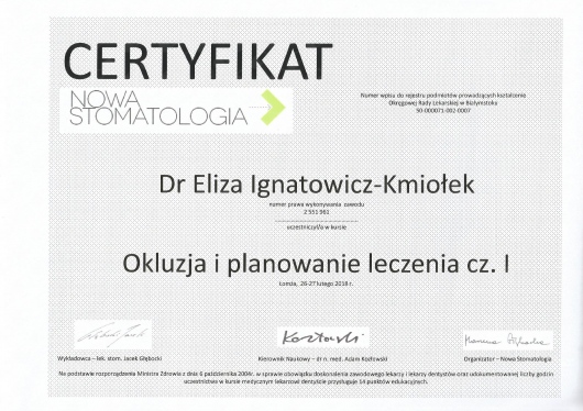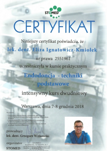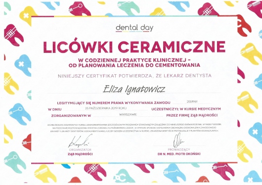 W codziennej praktyce zajmuję się Stomatologią Zachowawczą, Endodoncją, Protetyką.