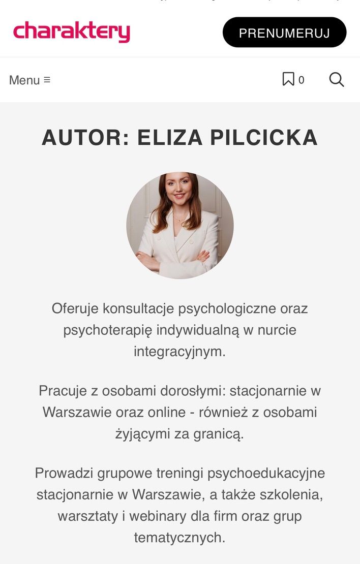 Aktualnie prowadzę również grupowe treningi psychoedukacyjne: Trening TUS z elementami mentalizacji i Trening oparty o mentalizację (MBT) w Centrum Terapii Dialog w Warszawie. Prowadzę rownież szkolenia, warsztaty i webinary dla firm oraz grup tematycznych.