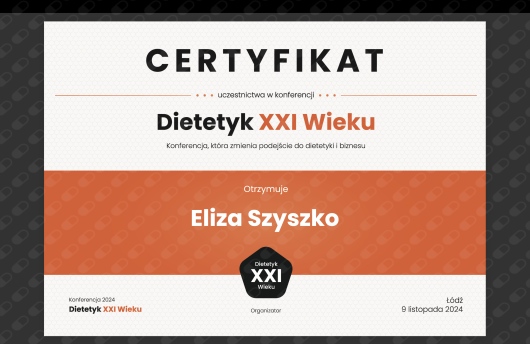 Pani Eliza to świetna specjalistka – dzięki przygotowanej rozpisce diety zaczęłam uczyć się nowych nawyków żywieniowych i regularnych godzin posiłków. Konsultacja naprawdę otworzyła mi oczy na to, jak źle wcześniej się odżywiałam. Teraz czuję się znacznie lepiej i mam dużo większą świadomość tego, co jem. Jestem bardzo wdzięczna za wsparcie i profesjonalne podejście. Serdecznie polecam!