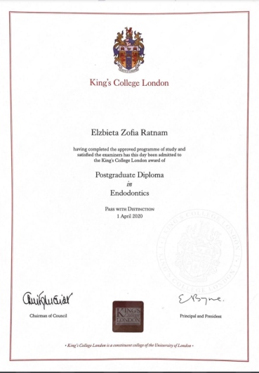 Nieustannie się uczę i uczestniczę w wielu kursach w kraju i za granicą m.in. UCL Eastman Dental Institute, Postgraduate courses including Treatment for Difficult Cases (King’s/Guy’s London), Advanced Aesthetics &Prosthodontics (Clinica Malo, Lisbon)).