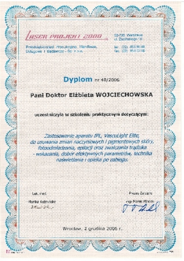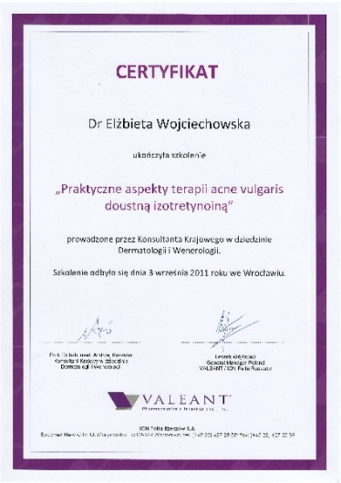 Jaki jest zakres porad oferowanych przez Elżbieta Wojciechowska?Elżbieta Wojciechowska to dermatolog. Na podstawie swojego doświadczenia i wykształcenia Elżbieta Wojciechowska oferuje usługi takie jak: konsultacja dermatologiczna, mezoterapia, krioterapia, elektrokoagulacja, usuwanie zmian naczyniowych, Laserowe zamykanie naczynek, peeling chemiczny, laserowe leczenie rumienia, leczenie trądziku różowatego.