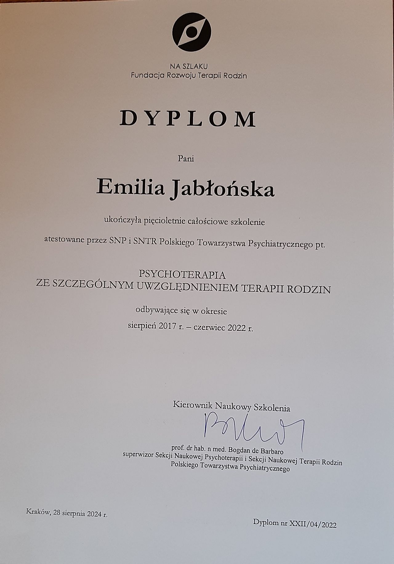 Ukończyłam studia na wydziale lekarskim Collegium Medicum Uniwersytetu Jagiellońskiego w 2013 r. Od 2015r. pracuję w Szpitalu Uniwersyteckim w Krakowie w Oddziale Psychiatrii Dorosłych, Dzieci i Młodzieży gdzie realizuję specjalizację z psychiatrii dorosłych. Swoje doświadczenie zawodowe zdobywałam również w Bielskim Centrum Psychiatrii - Olszówka w Bielsku- Białej oraz w Szpitalu Klinicznym im.dr. J. Babińskiego w Krakowie. Jestem członkinią Polskiego Towarzystwa Psychiatrycznego. Stale pogłębiam swoją wiedzę przez uczestnictwo w szkoleniach, kursach, konferencjach. Ukończyłam Całościowy Kurs Psychoterapii „Psychoterapia ze szczególnym uwzględnieniem terapii rodzin” pod kierownictwem naukowym prof. dr. hab. med. Bogdana de Barbaro, przygotowujący do uzyskania certyfikatu psychoterapeuty. W pracy psychoterapeutycznej integruje podejście psychodynamiczne oraz systemowe. Swoja pracę poddaję regularnej superwizji. Zawodowo interesuje się neuroatypowiścią oraz psychofarmakoterapią pacjentów z zaburzeniami depresyjnymi, lękowymi.