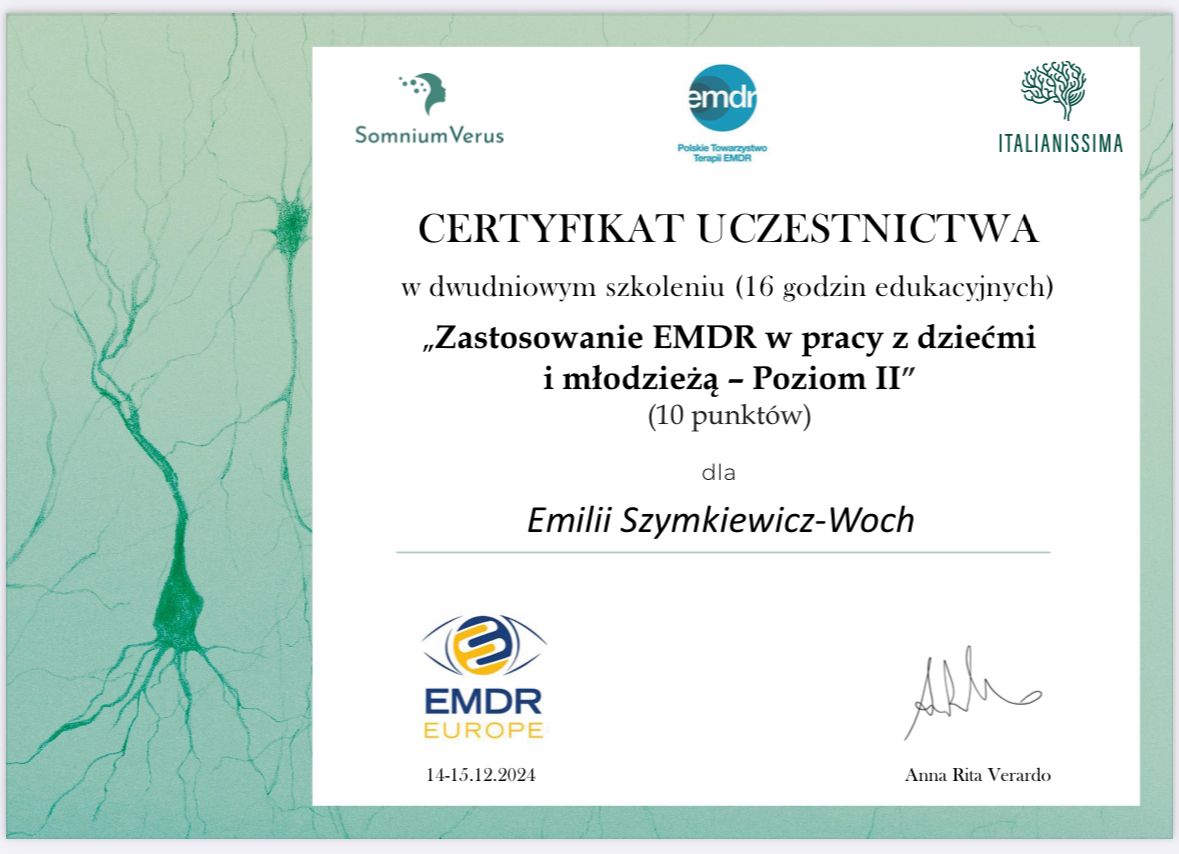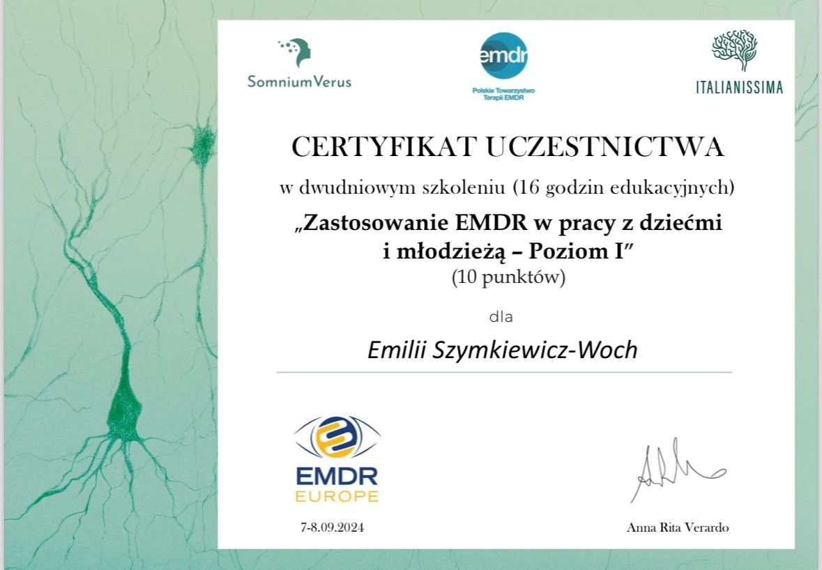 • Psychotraumatolog, Psycholog, Terapeuta EMDR, Terapeuta par • Diagnoza ADHD dzieci i młodzieży •