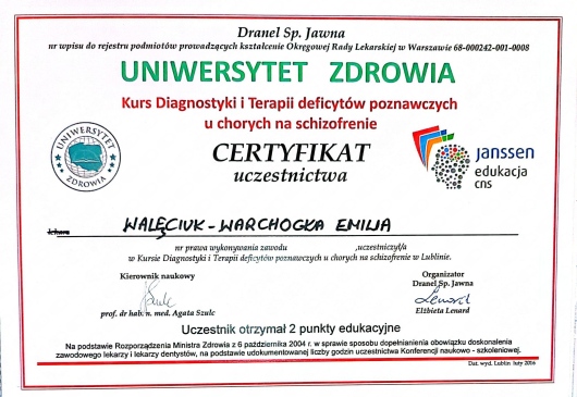 Czy Emilia Walęciuk-Warchocka przyjmuje online, bez konieczności pojawiania się w placówce?Nie, w tym momencie Emilia Walęciuk-Warchocka nie oferuje konsultacji online.