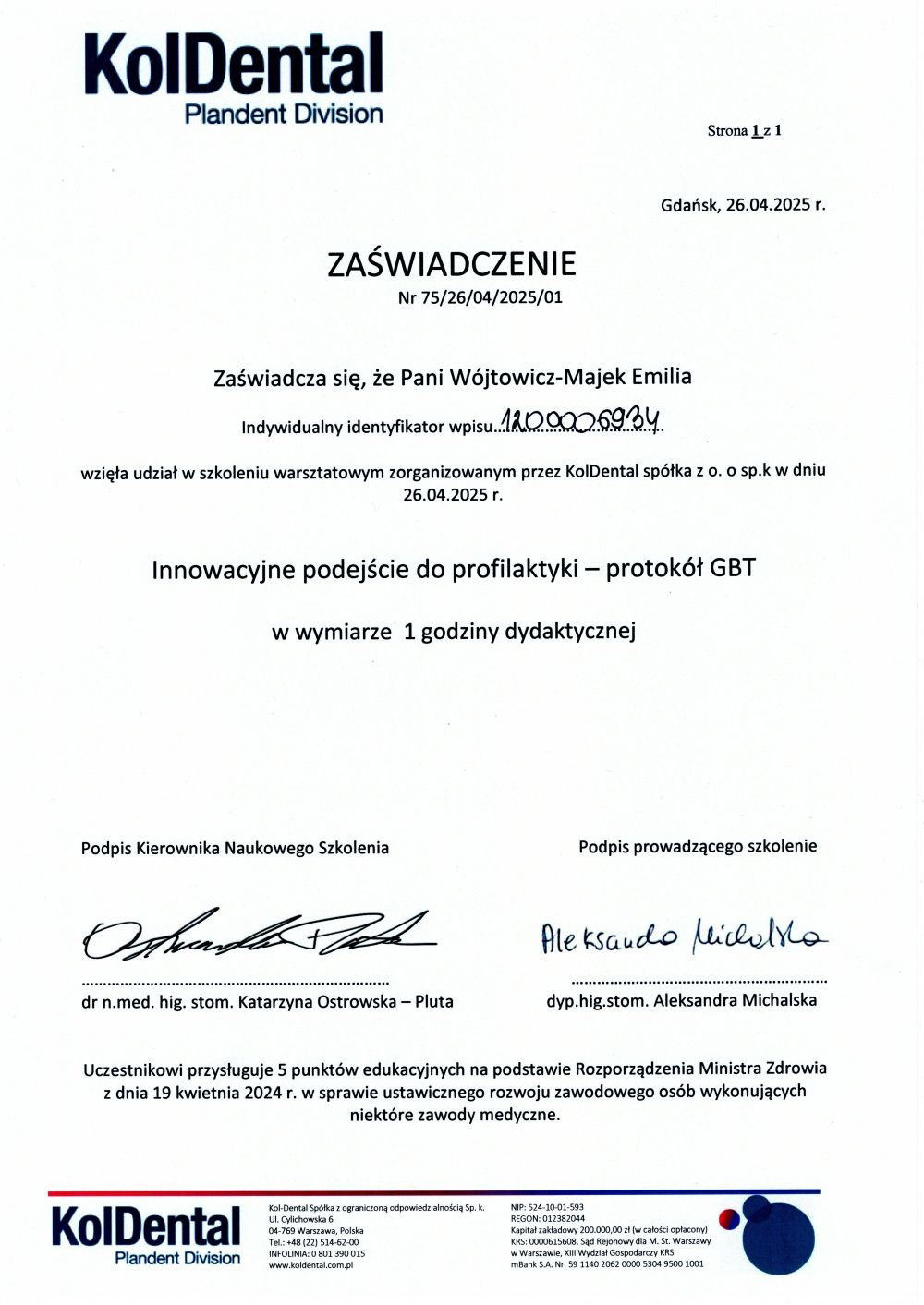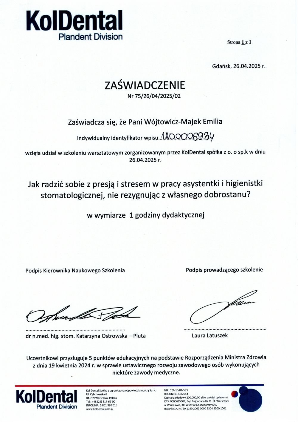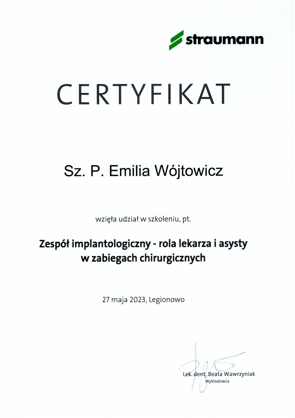 Z troską i profesjonalizmem podchodzę do każdego przypadku, tak aby pacjenci czuli się pewnie i bezpiecznie. Regularnie poszerzam swoją wiedzę, uczestnicząc w szkoleniach i kursach, dzięki czemu mogę świadczyć usługi na najwyższym poziomie.