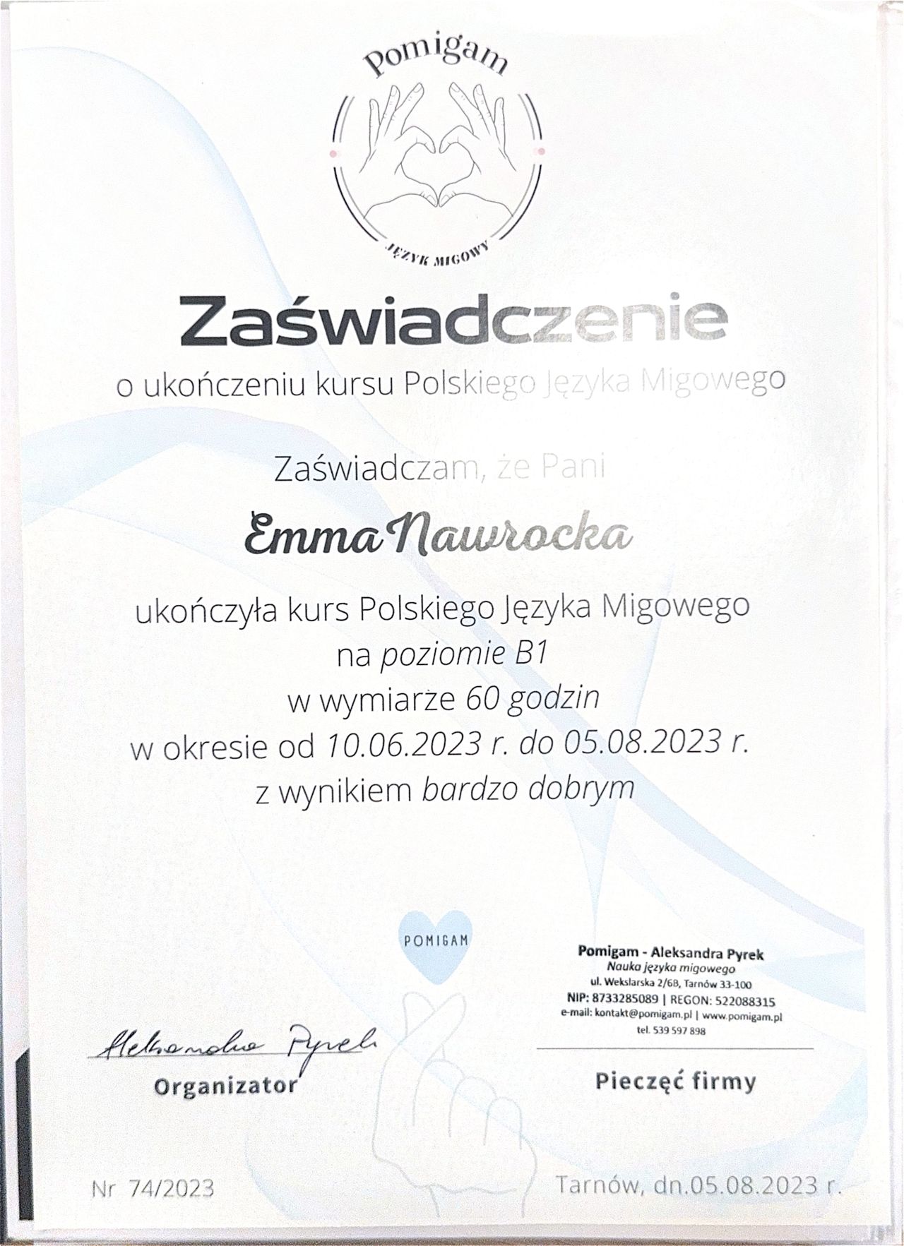 W jakich językach konsultuje Emma Nawrocka?Języki, których używa Emma Nawrocka to polski.