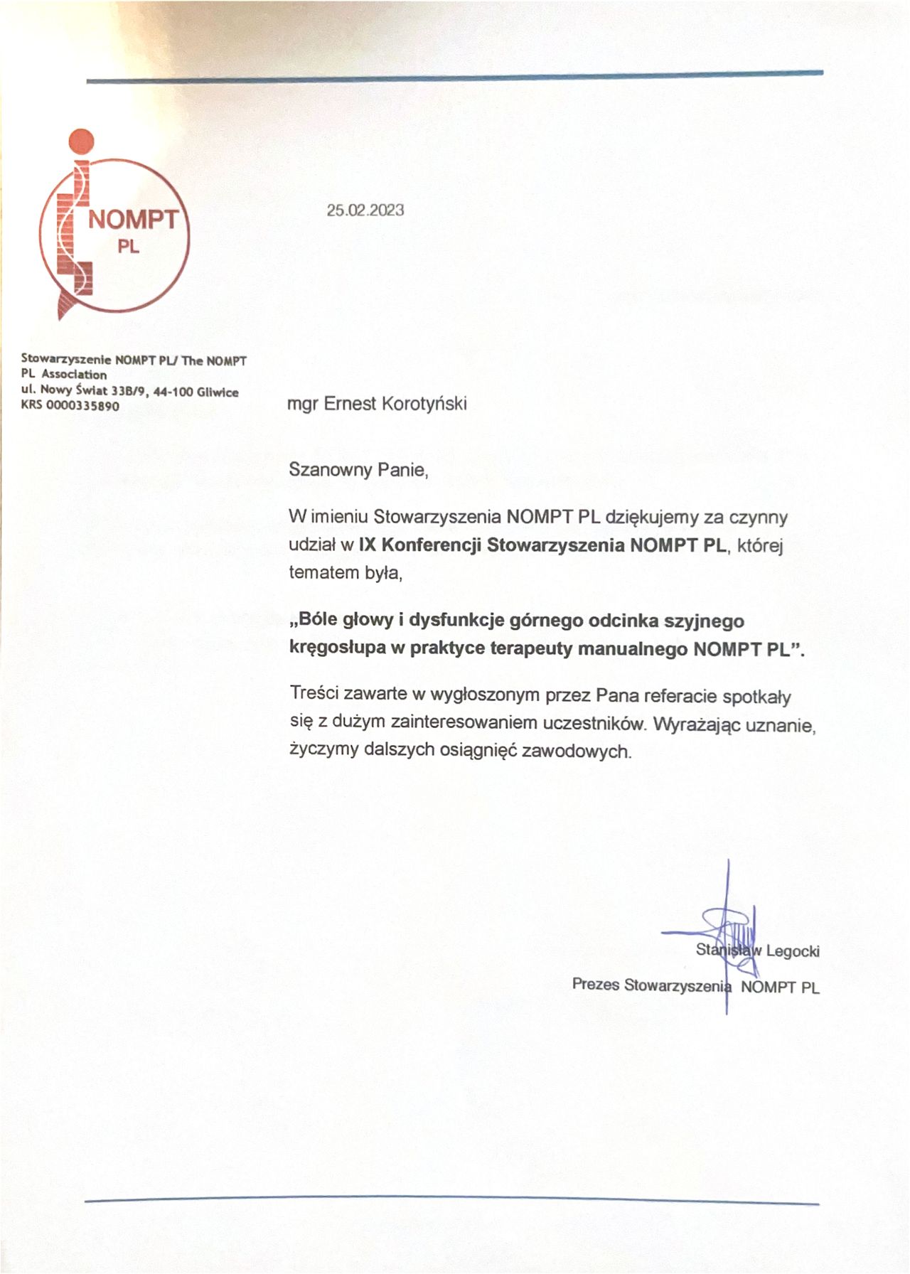 • Temat: Bóle głowy i dysfunkcje górnego odcinka szyjnego kręgosłupa w praktyce terapeuty manualnego NOMPT PL