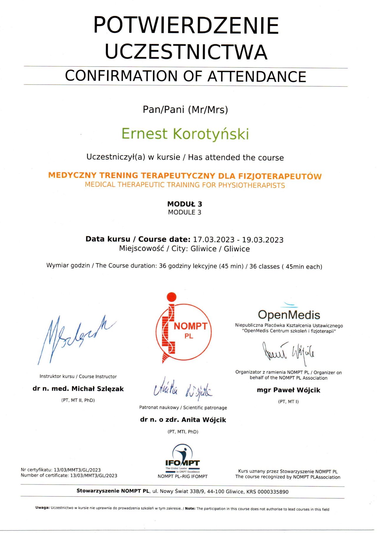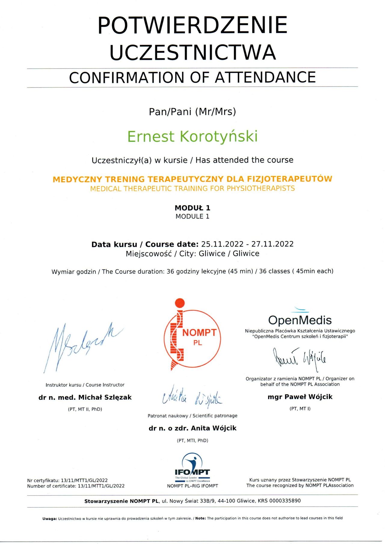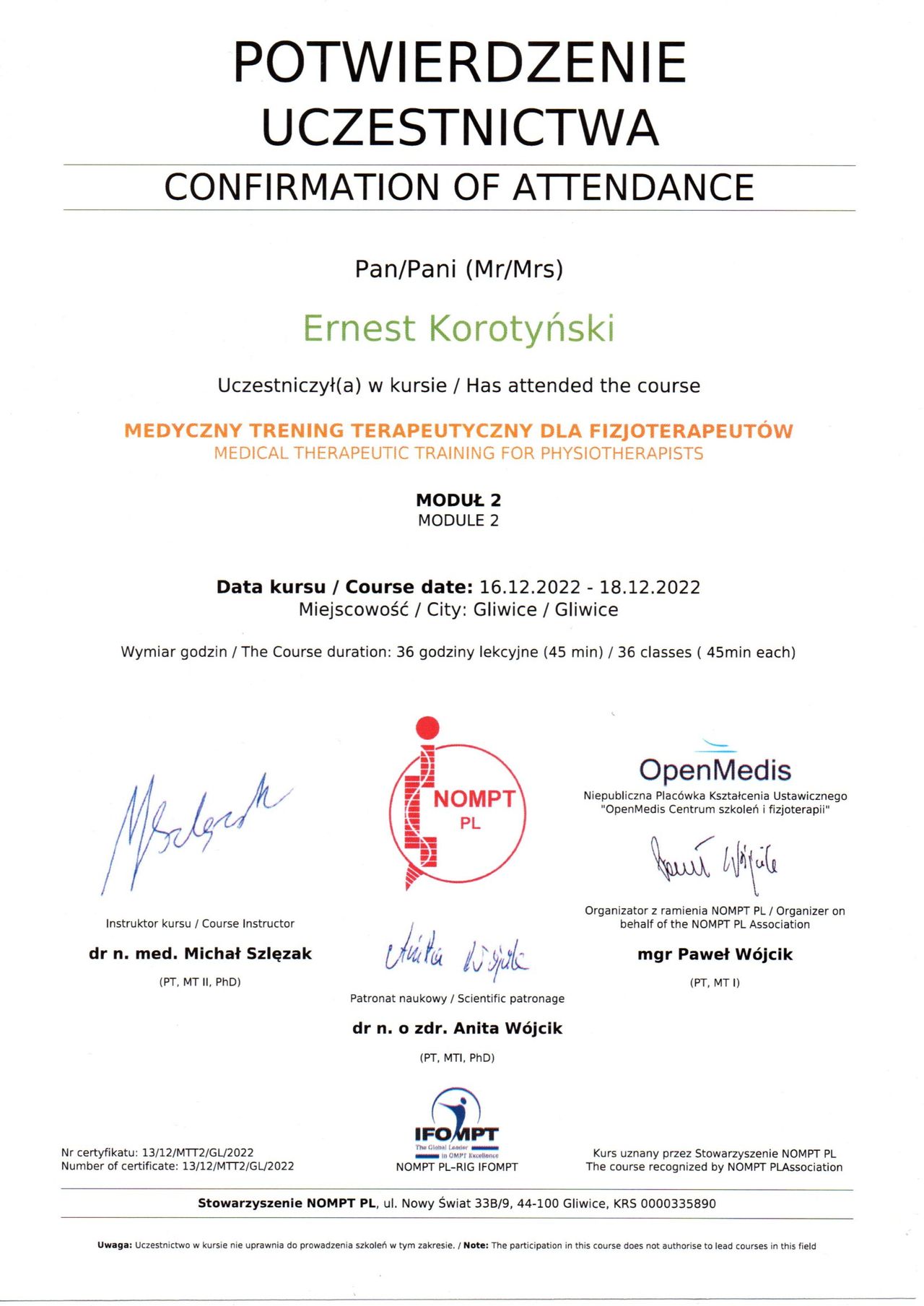 • Medyczny Trening Terapeutyczny Dla Fizjoterapeutów I 2022