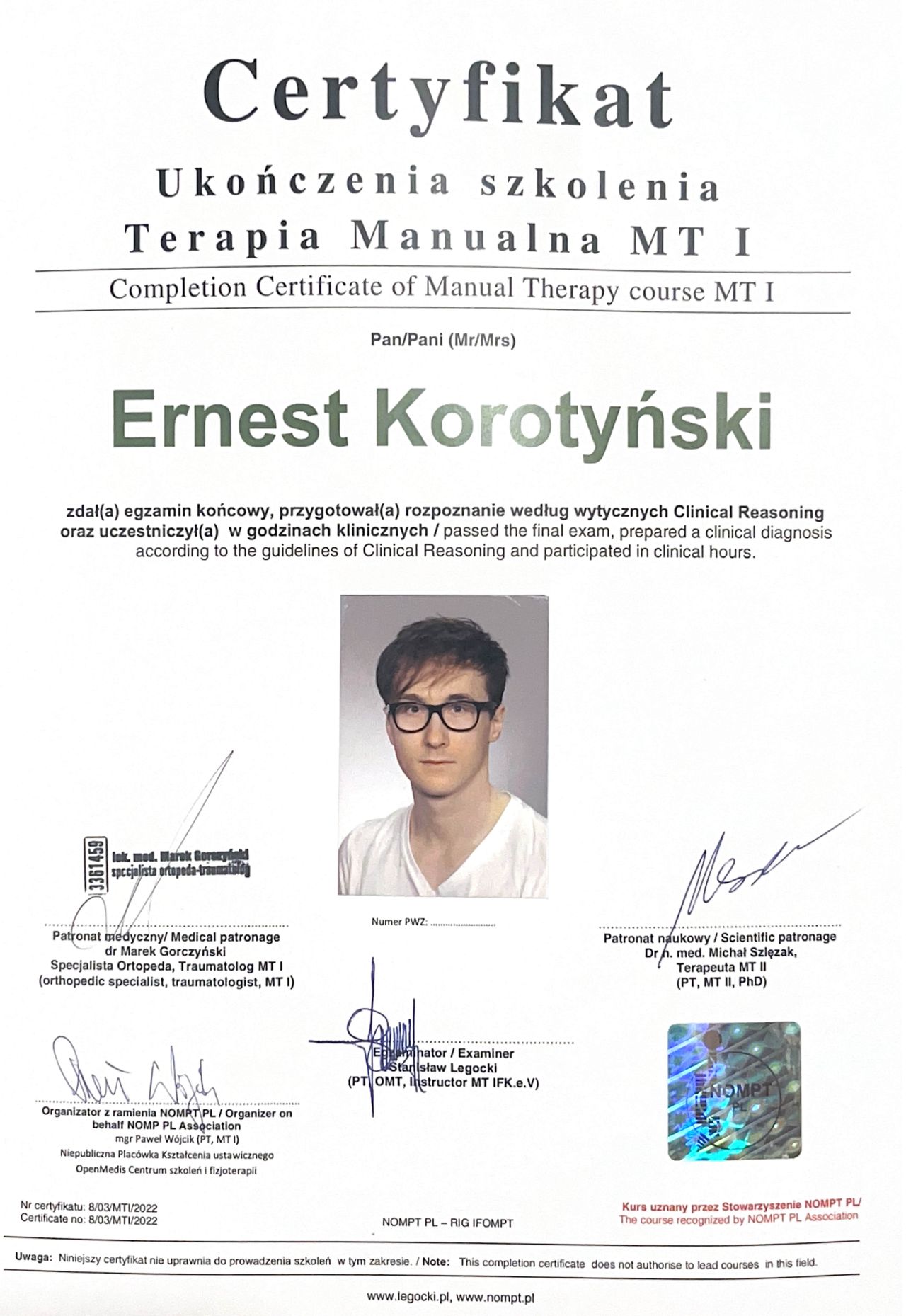 Pan Ernest to specjalista, który po pierwsze widzi pacjenta, a nie poszczególne objawy, a przy tym potrafi wytłumaczyć wszystko językiem zrozumiałym dla laika. Czułam się wysłuchana (bardzo szczegółowy wywiad) i zaopiekowana. Terapia jest bezbolesna, przynosi ulgę, a pacjent zostaje włączony w działania terapeutyczne, dostając zadania domowe ;) Polecam z całego serca!