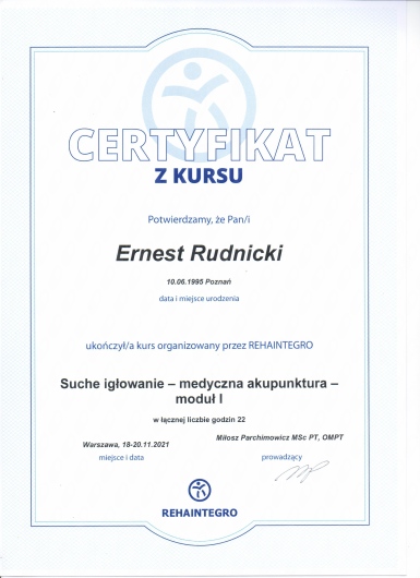 Polecam• mgr Ernest Rudnicki • Diagnostyka + Terapia Manualna •