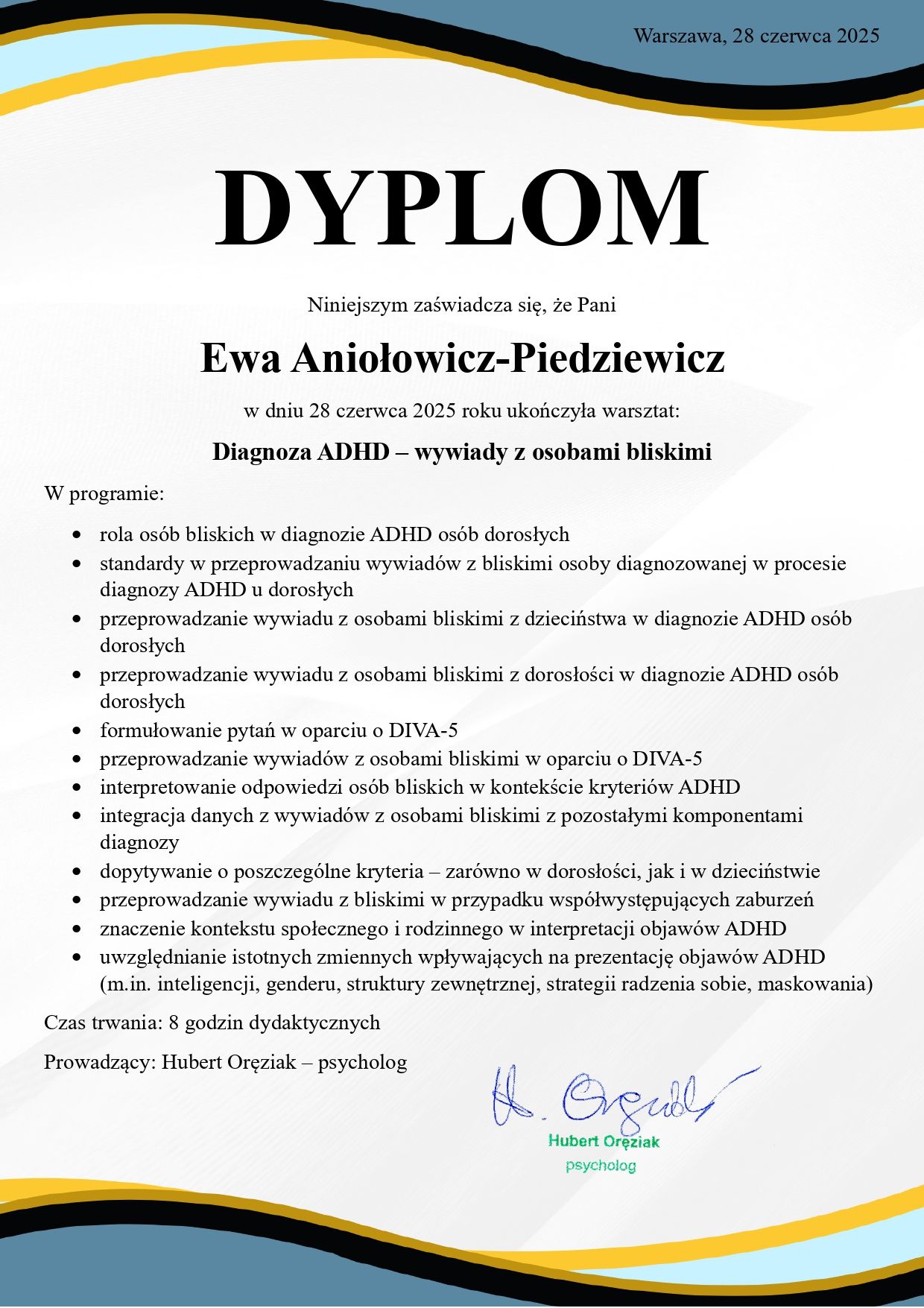 6) Diagnostyka ADHD i ASD u os. dorosłych składa się z kilku etapów: