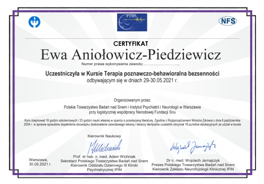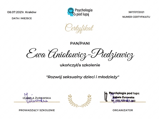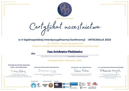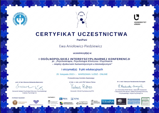 Dokładam wszelkich starań, aby poszerzać kwalifikacje i umiejętności – uczestniczę w licznych szkoleniach, kursach, warsztatach i konferencjach, czytam najnowsze publikacje naukowe.
