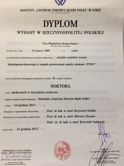 Przebywając w CZMP w Łodzi podczas pierwszej ciąży ucieszyłam się po przeczytaniu pozytywnych opinii, że to Pani dr będzie moim lekarzem prowadzącym. Niestety zawiodłam się. Pani doktor nie dbała o odpowiedni przekaz informacji przez co czułam się niedoinformowana. Nie odczułam zainteresowania pacjentem z jej strony. Celowo czekałam na kolejne badanie USG celem sprawdzenia AFI, a okazało się, że zostało już ono zmierzone na wcześniejszym USG, tylko nikt mnie o tym nie poinformował. Podczas porannego obchodu czułam, że ważniejszy jest dla Pani dr ordynator, któremu to tłumaczyła wszystko, ale już zapomniała o tak ważnym kontakcie z pacjentem. Nie chciałabym już więcej dowiadywać się na temat swojego stanu zdrowia na skutek konieczności podsłuchiwania rozmowy pomiędzy lekarzem, a ordynatorem. Pacjent też jest ważny (albo w zasadzie przede wszystkim pacjent)! Na plus, że Pani dr sprawnie i bezboleśnie wykonała zabieg amnioredukcji.