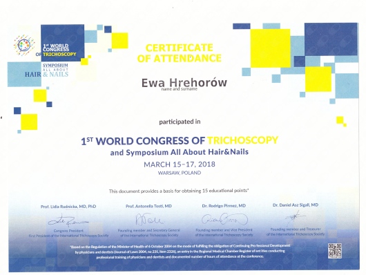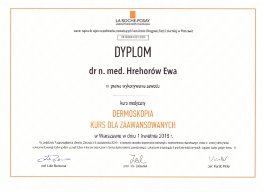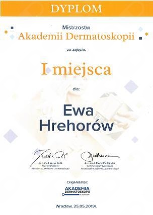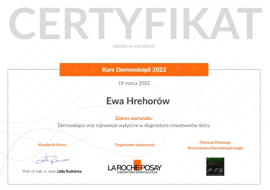Jako lekarz dermatolog mam wieloletnie doświadczenie w leczeniu i diagnostyce chorób dermatologicznych u dzieci i u osób dorosłych. Systematycznie pogłębiam swoją wiedzę dermatologiczną uczestnicząc w licznych szkoleniach i konferencjach naukowych. W moim szczególnym zainteresowaniu pozostaje dermatoskopowa ocena znamion barwnikowych oraz idąca za tym profilaktyka w zakresie nowotworów skóry, stąd liczne szkolenia oraz kursy w tym zakresie. Jestem członkiem Oddziału Dolnośląskiego Polskiego Towarzystwa Dermatologicznego oraz International Dermatoscopy Society oraz International Society of Teledermatology.