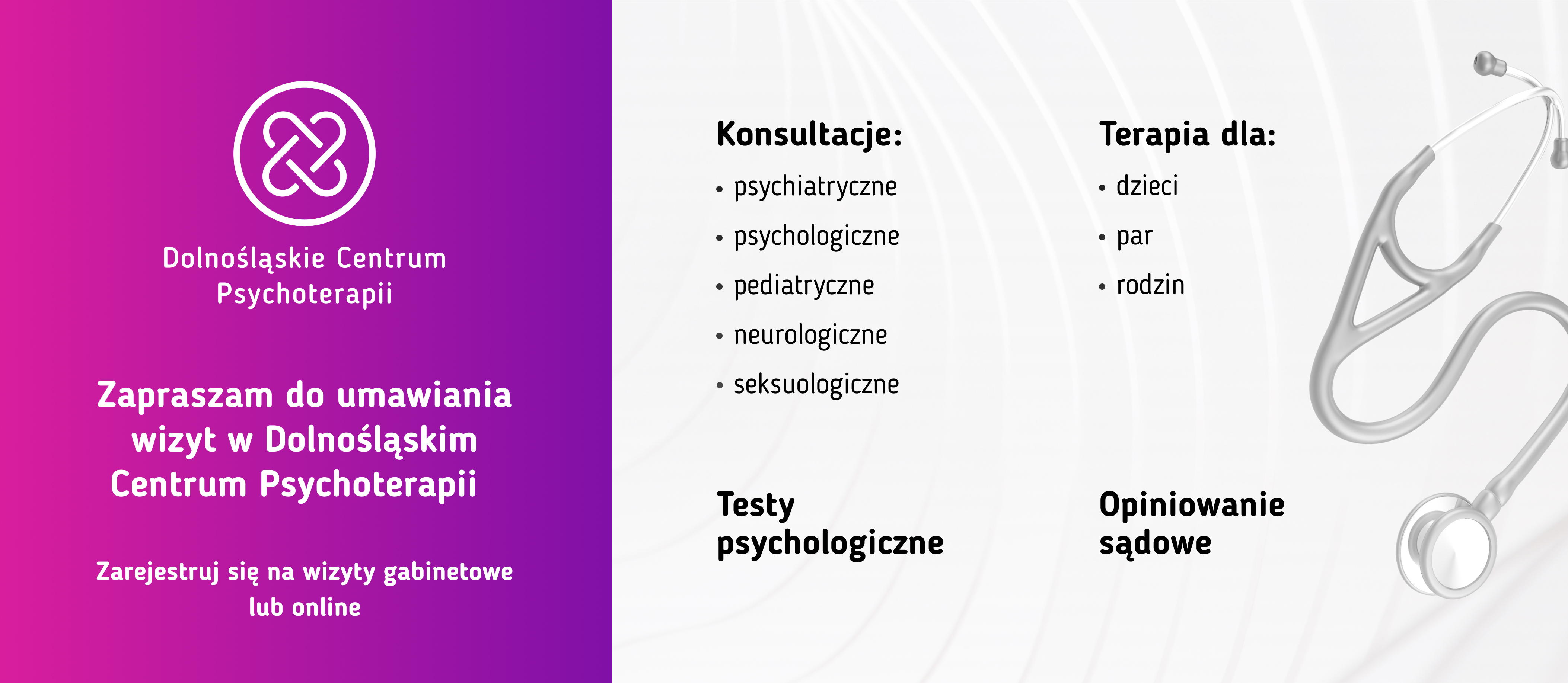 Obecnie pacjentów przyjmuje online w Dolnośląskim Centrum Psychoterapii (www.dcp.wroclaw.pl)