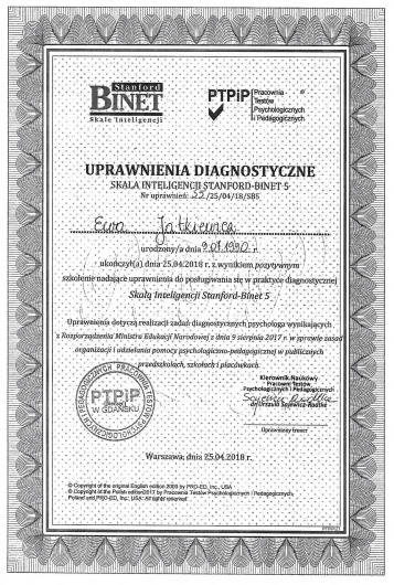 Psychologiczno-Pedagogicznej, Szkole Specjalnej, Ośrodku Rehabilitacyjnym Dla Dzieci, w przedszkolu oraz w liceum ogólnokształcącym. W celu zapewnienia jak najlepszej jakości pomocy psychologicznej swoją pracę poddaję regularnej superwizji u certyfikowanego superwizora. Pracując z pacjentami, kieruję się zasadami Kodeksu Etyczno-Zawodowego Psychologa.