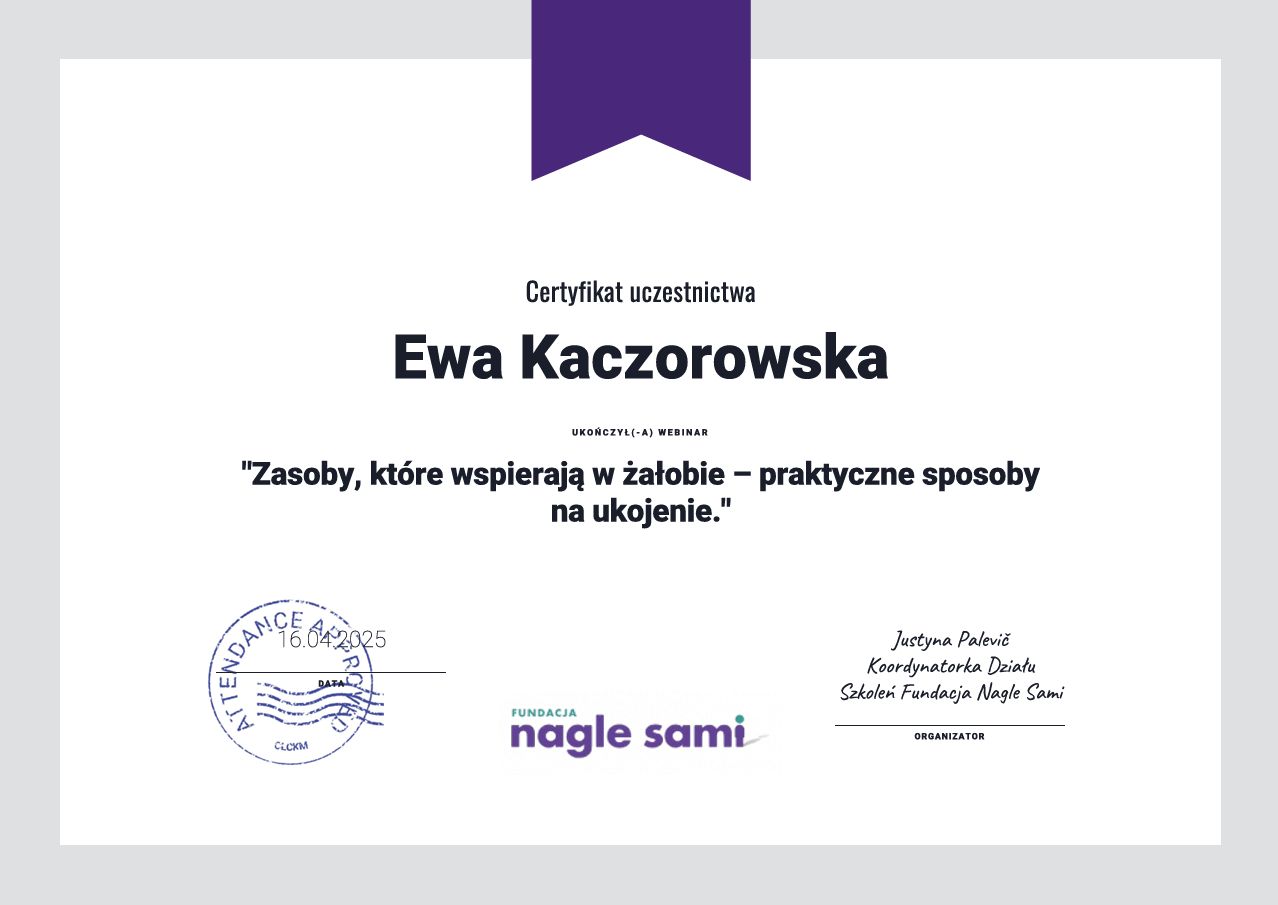 Pani Ewa Kaczorowska to psycholog, którego mogę polecić z pełnym przekonaniem. Na pierwszą wizytę szłam z ogromnym lękiem, czy będę w stanie się odezwać i opowiedzieć o swoich problemach. Dzięki jej ciepłu, profesjonalizmowi i empatii bardzo szybko poczułam się bezpiecznie i zrozumiana. Pomogła mi przejść przez wyjątkowo trudny czas w życiu i jestem za to ogromnie wdzięczna.