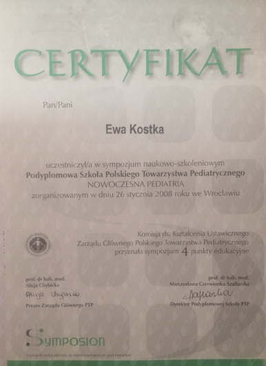 Jaki jest zakres porad oferowanych przez Ewa Kostka?Ewa Kostka to pediatra. Na podstawie swojego doświadczenia i wykształcenia Ewa Kostka oferuje usługi takie jak: konsultacja pediatryczna, konsultacja pediatryczna (weekend).