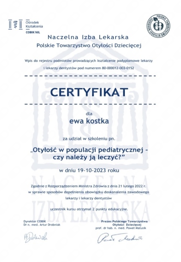 Bardzo polecam Panią Ewę. Przyjechałem spanikowany niepokojącymi wynikami córki. Pani doktor przyjęła mnie ze spokojem, bardzo profesjonalnie, ale przede wszystkim ze zrozumieniem i zaangażowaniem. Otrzymałem właściwie skierowania i właściwą poradę. Wyniki okazały się ok, więc z tym większą ulgą i wdzięcznością polecam.