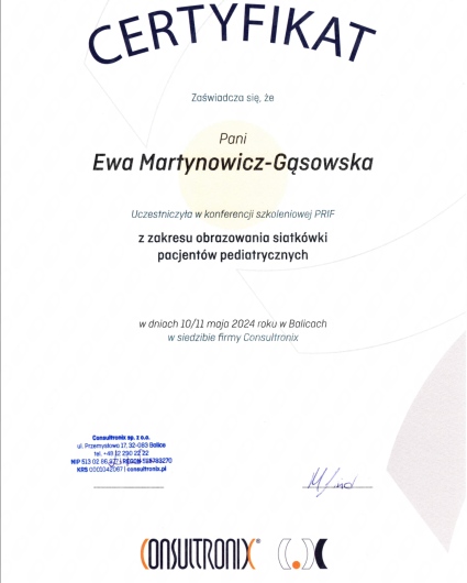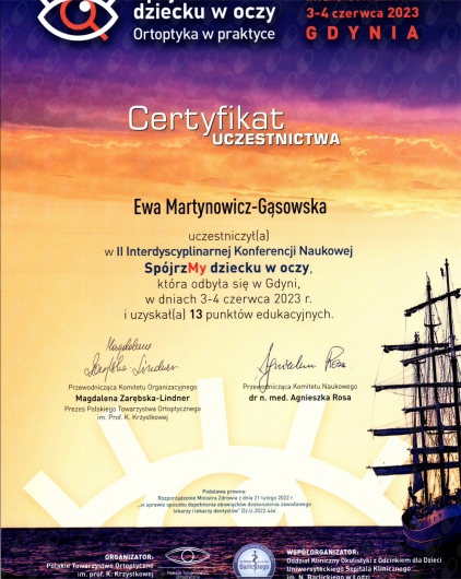Stale poszerzam swoją wiedzę i podnoszę kwalifikacje poprzez uczestnictwo w konferencjach oraz szkoleniach naukowych.