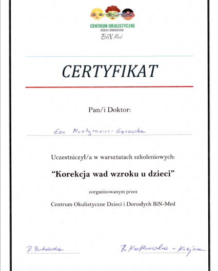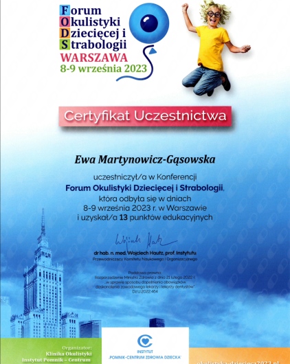 Jaki jest zakres porad oferowanych przez Ewa Martynowicz-Gąsowska?Ewa Martynowicz-Gąsowska to okulista, okulista dziecięcy. Na podstawie swojego doświadczenia i wykształcenia Ewa Martynowicz-Gąsowska oferuje usługi takie jak: konsultacja okulistyczna.