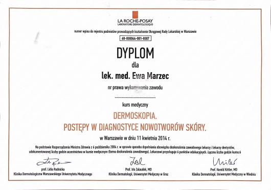 Mam za sobą prawie 29-letnie doświadczenie lekarskie zarówno w zakresie dermatologii szpitalnej jak i ambulatoryjnej. Od 1992 do 2004 pełniłam obowiązki asystenta i starszego asystenta w Oddziale Dermatologii Szpitala im. St. Żeromskiego w Krakowie. W tych samych latach pracowałam w Poradni Dermatologicznej SPZOZ a następnie NZOZ Kraków-Podkórze. W kręgu moich zainteresowań jest szeroko pojęta dermatologia kliniczna oraz wybrane zagadnienia z dermatologii estetycznej.