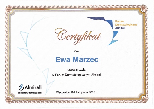 Jaki jest zakres porad oferowanych przez Ewa Marzec?Ewa Marzec to dermatolog. Na podstawie swojego doświadczenia i wykształcenia Ewa Marzec oferuje usługi takie jak: konsultacja dermatologiczna, Konsultacja dermatologiczna dzieci, usuwanie zmian skórnych, Botoks, usuwanie przebarwień, usuwanie zmarszczek, Kwas hialuronowy, elektrokoagulacja, krioterapia, peeling chemiczny.