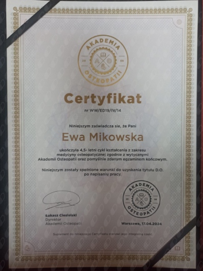 Jaki jest zakres porad oferowanych przez Ewa Mikowska?Ewa Mikowska to fizjoterapeuta, fizjoterapeuta dziecięcy. Na podstawie swojego doświadczenia i wykształcenia Ewa Mikowska oferuje usługi takie jak: osteopatia pediatryczna, Osteopatia kobiet w ciąży, osteopatia, osteopatia ginekologiczna, osteopatia poporodowa, Terapia czaszkowo-krzyżowa.