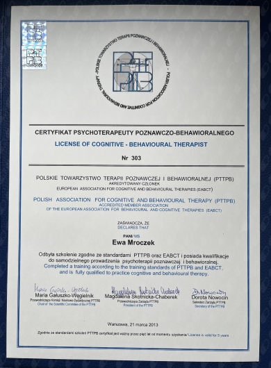 W tym momencie dostępne są konsultacje online. Zapraszam do wypróbowania tej formy terapii. Spotkanie odbywa się w przyjaznej, akceptującej atmosferze. Link do spotkania, który pacjent otrzymuje przed wizytą, umożliwia łatwe połączenie z terapeutą. Wielu pacjentów ceni sobie taką formę terapii, ze względu na szybką dostępność, oszczędność czasu i wygodne połączenie video na portalu znany lekarz.