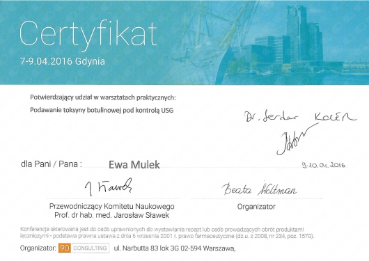 Jestem bardzo zadowolona z wizyty u Pani Ewy Mułek, na wszystkie pytania i moje wątpliwości otrzymałam szczegółową odpowiedź. Pani doktor bardzo miła oraz konkretna. Wszystkie zalecenia pomogły mi usprawnić mój kręgosłup odcinek szyjny. Życzę każdemu pacjentowi takiego lekarza i polecam z czystym sumieniem. Bardzo dziękuję w końcu mogę ruszać szyją bez bólu.