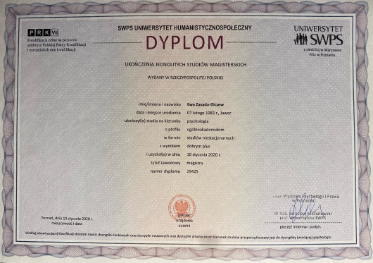 Do Pani Ewy trafiłam 5 lat temu do dzisiaj miło wspominam nasze spotkania chociaż już skończyłam terapię mam zrobione notatki ,które są dla mnie cały czas wsparciem .Cudowna osoba ,którą polecam z całego serca .Do dzisiaj wspominam miło nasze spotkania Pani Ewa pokazała mi jak można spojrzeć na życie z innej strony niż nas nauczono za dziecka .
