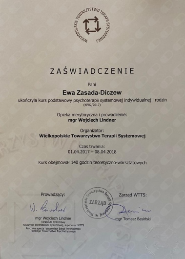 Pani Ewa jest bardzo ciepłą osobą, która dba o każdy szczegół i komfort podczas rozmowy. Nie tylko słucha ale i słyszy. Podczas terapii czuję się bezpiecznie i zrozumiana a każde 50 minut kończy się uśmiechem na twarzy i pełnym poczuciem własnej wartości. Szczerze polecam i zachęcam do korzystania z pomocy Pani Ewy, poniewaz jest to pomoc ogromna. Doceniam, polecam i zachęcam. Najlepsza decyzja w życiu, najlepszy terapeuta