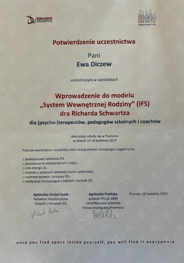 Pani Ewo, z głębi serca dziękuję za wsparcie i zaangażowanie.• HealthyMind Gabinety Terapii i Rozwoju Ewa Nowicki • psychoterapia indywidualna •