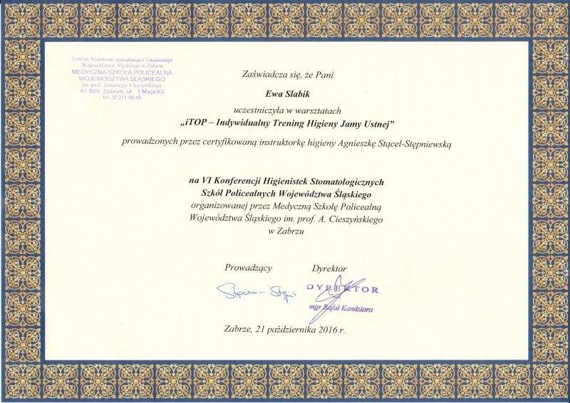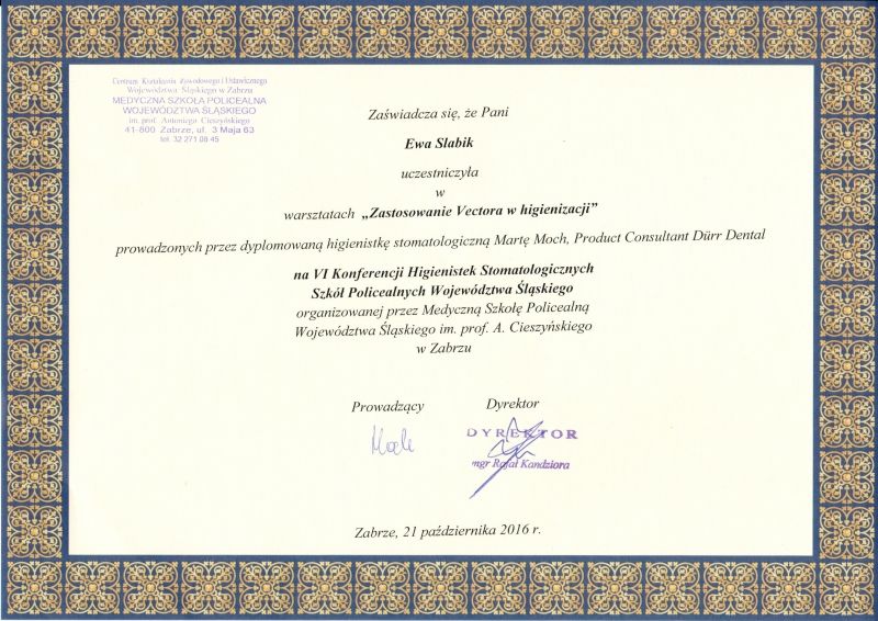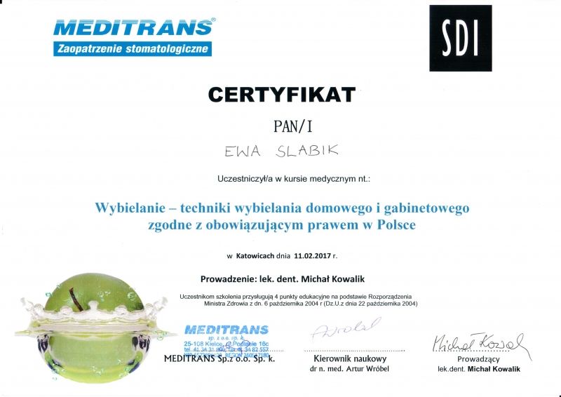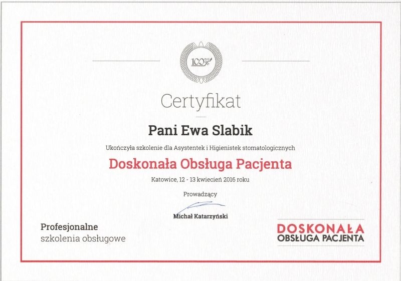 Regularnie poszerzam swoją wiedzę, uczestnicząc w kursach i szkoleniach, aby oferować pacjentom usługi na najwyższym poziomie