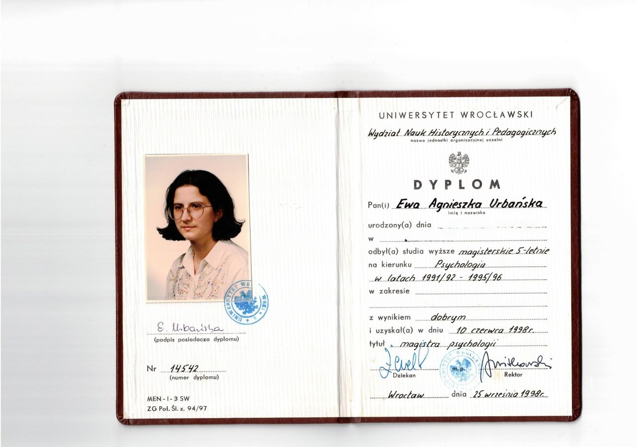 Ukończyłam psychologię na Uniwersytecie Wrocławskim oraz Studium Terapii Uzależnień w Instytucie Psychologii Zdrowia w Warszawie. Odbyłam również kurs interwencji kryzysowej.