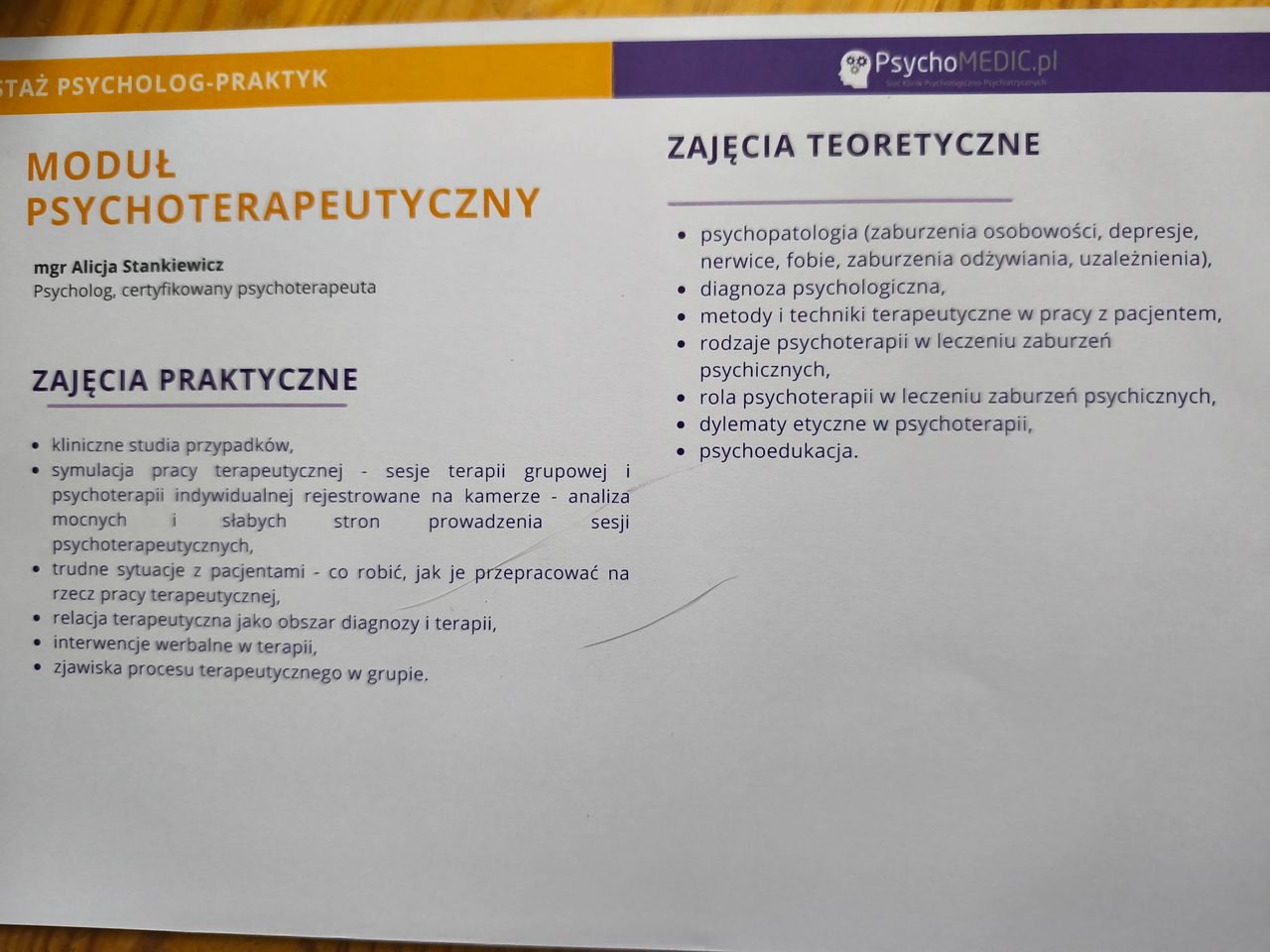 Doświadczenie kliniczne zdobywałam m.in. podczas stażu w PsychoMedic, gdzie pracowałam w nurcie poznawczo-behawioralnym (CBT). Od kilku lat współpracuję ze Stowarzyszeniem Dwie Kreski, wspierając kobiety w okresie ciąży i połogu.