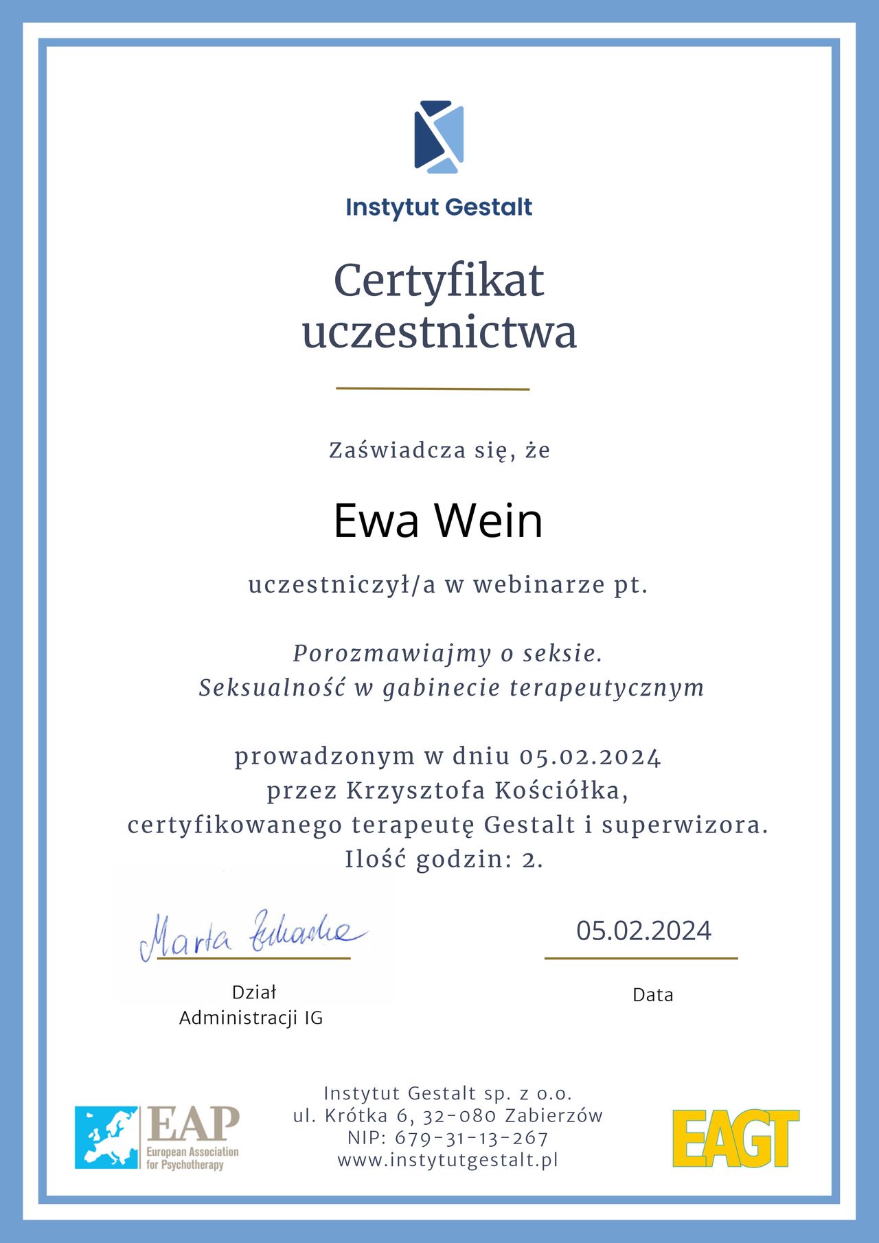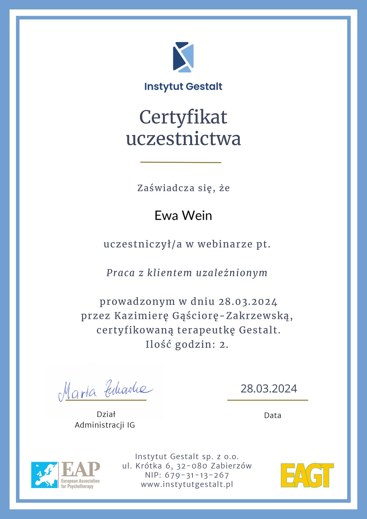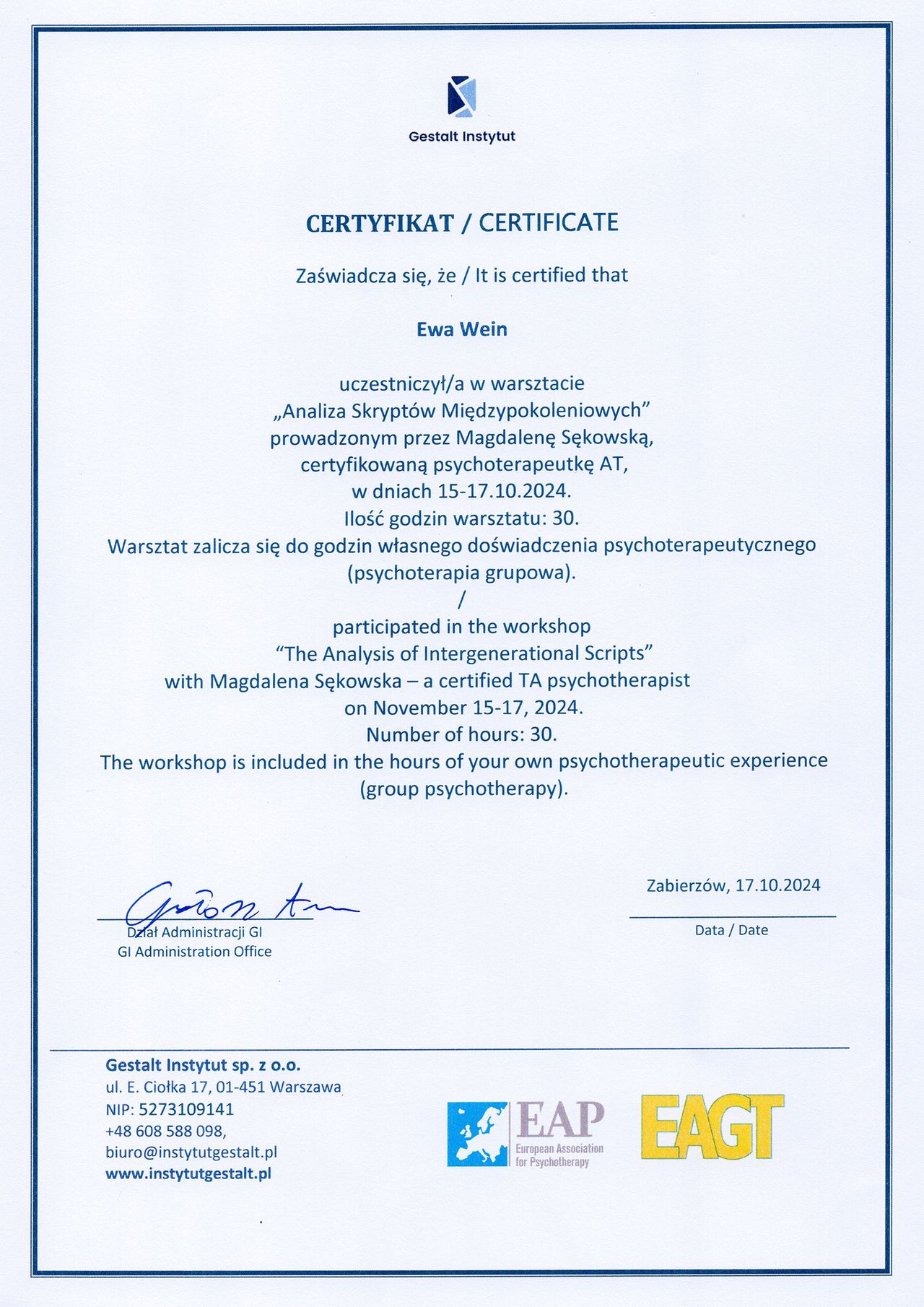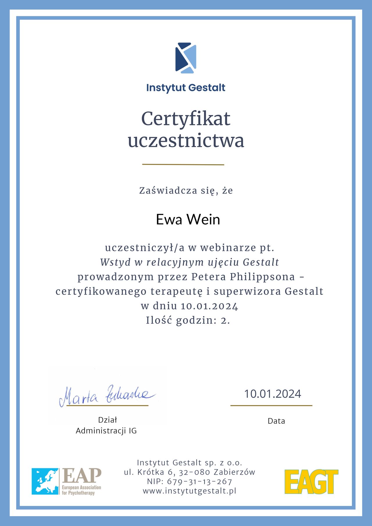 • Ewa Wein Psychoterapia Gestalt • konsultacja psychoterapeutyczna (pierwsza wizyta) •