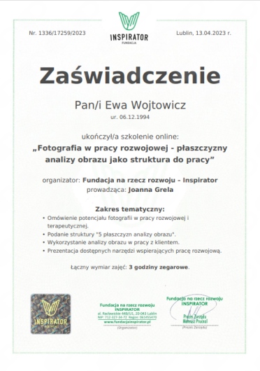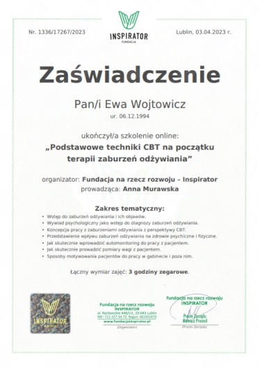 Wierzę, że każdy człowiek ma możliwość zmiany swojego życia na lepsze, dlatego wspieram moich klientów w dokonywaniu trwałych zmian.