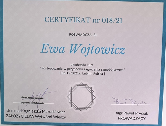 Z doświadczenia wiem, jak ważne jest profesjonalne wsparcie psychologiczne w sytuacjach, kiedy wydaje się, że wszystko zaczyna tracić sens. Świadomość, że jest osoba, z którą możesz porozmawiać o największych problemach i lękach pozwala przetrwać i zdecydować zawalczyć o swoje życie.