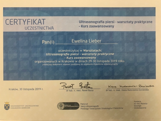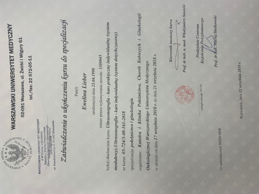 Uzyskałam stopień doktora nauk medycznych i nauk o zdrowiu, broniąc rozprawę na temat wpływu chorób ogólnoustrojowych u matki w trakcie ciąży na komórki macierzyste, występujące w łożysku. Jestem autorem i współautorem publikacji w dziedzinie medycyny opublikowanych w recenzowanych czasopismach medycznych.
