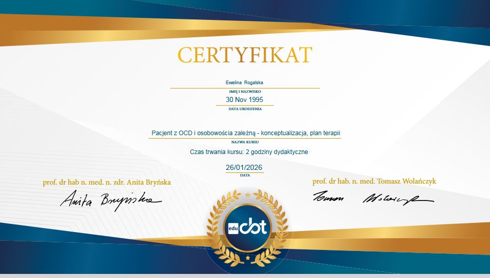 Mój syn od miesiąca spotyka się z Panią Psycholog i już po tym krótkim czasie widzę, jak bardzo była to dobra decyzja. Pani Ewelina jest niezwykle profesjonalna, uważna i empatyczna. Od samego początku potrafiła stworzyć bezpieczną, pełną zaufania atmosferę, w której syn czuje się swobodnie i otwarcie rozmawia. Jej wnikliwość, spokój oraz ciepłe podejście dają dziecku realne wsparcie, a mnie jako rodzicowi poczucie, że jest pod najlepszą opieką. Z pełnym przekonaniem polecam Panią Ewelinę Rogalską każdemu, kto szuka mądrej, życzliwej i skutecznej pomocy dla dziecka.