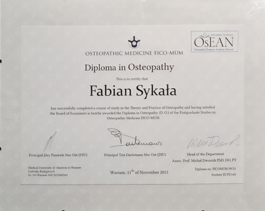 Polecam serdecznie Pana Fabiana Sykałę!!!!!! Najlepszy osteopata wspaniałe miejsce, świetna pomoc, ogromna wiedza, pełen profesjonalizm zdecydowanie polecam i serdecznie dziękuję Panu Fabianowi a Szefostwu gratuluję wspaniałych specjalistów w Humanicus Clinic