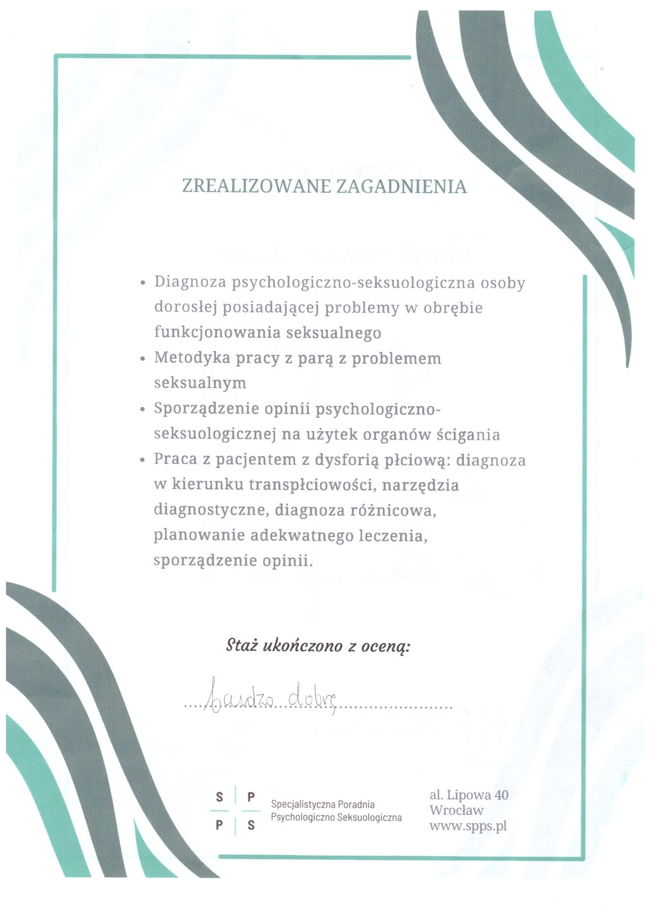 Świetny terapeuta, profesjonalny, empatyczny. Profesjonalne podejście, duże zaangażowanie i zrozumienie.