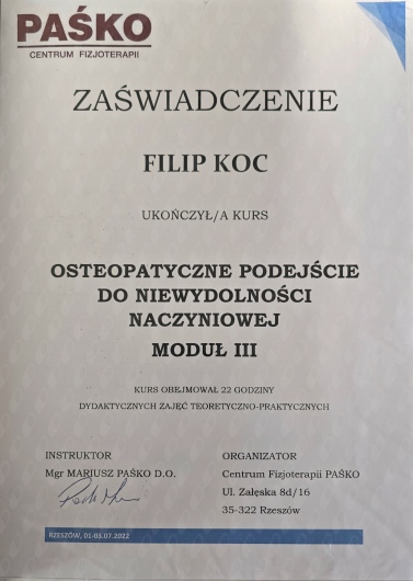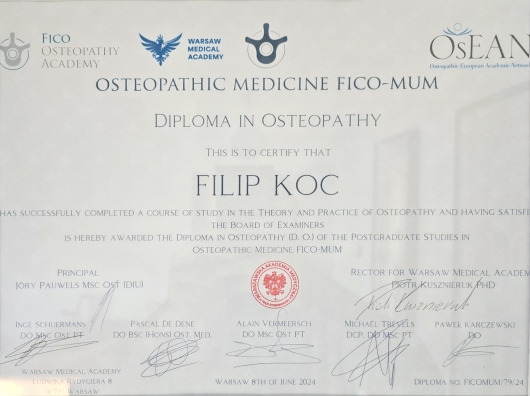 Jaki jest zakres porad oferowanych przez Filip Koc?Filip Koc to osteopata, fizjoterapeuta. Na podstawie swojego doświadczenia i wykształcenia Filip Koc oferuje usługi takie jak: Konsultacja osteopatyczna, fizjoterapia stomatologiczna, osteopatia ginekologiczna, terapia psychosomatyczna, terapia wisceralna, igłoterapia, osteopatia, rehabilitacja stomatologiczna, konsultacja fizjoterapeutyczna, Wizyta osteopatyczna.