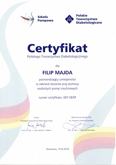 Jaki jest zakres porad oferowanych przez Filip Majda?Filip Majda to diabetolog. Na podstawie swojego doświadczenia i wykształcenia Filip Majda oferuje usługi takie jak: konsultacja diabetologiczna, konsultacja online.