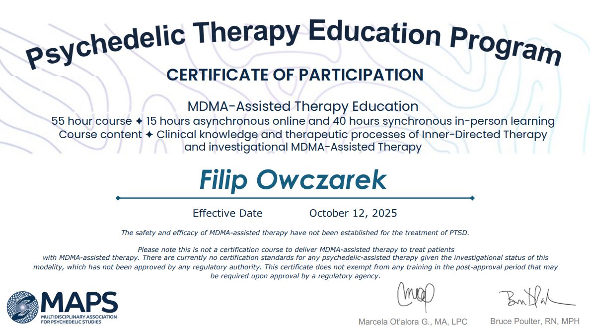 Jaki jest zakres porad oferowanych przez Filip Owczarek?Filip Owczarek to psychoterapeuta. Na podstawie swojego doświadczenia i wykształcenia Filip Owczarek oferuje usługi takie jak: konsultacja psychoterapeutyczna, psychoterapia par, coaching.